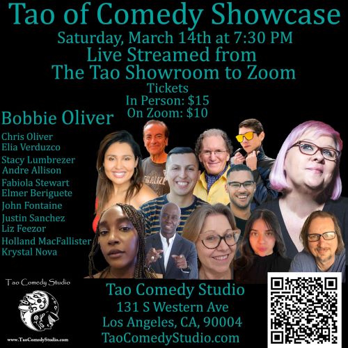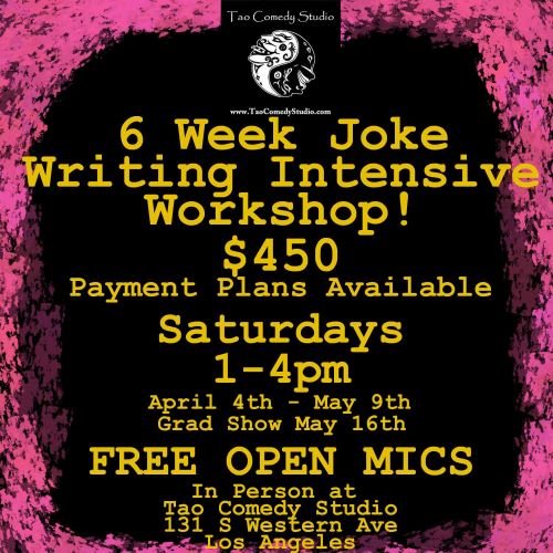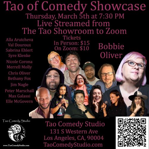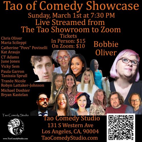 Tao Comedy Studio is an intersectional feminist comedy space and Los Angeles’ Premier StandUp Comedy School. Conveniently located on Western Avenue in Koreatown, two blocks South of Beverly Blvd (between 1st and 2nd). Owned by 30+ year veteran comedian and comedy coach Bobbie Oliver (author of The Tao of Comedy: Embrace the Pause) and husband writer/comedian Chris Oliver, Tao Comedy Studio prides itself on being an inclusive, safe space for comedy with an amazing Zen vibe.